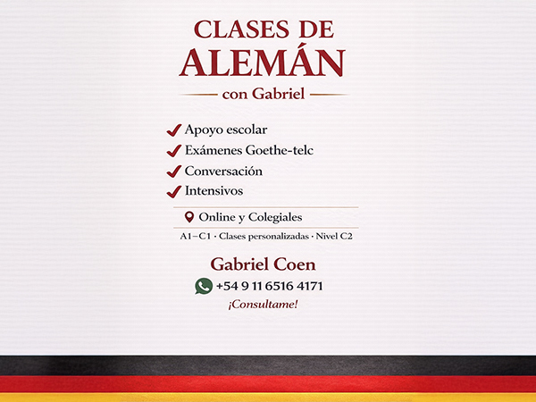 Soy Gabriel, ex-alumno del Colegio Pestalozzi y profesor de alemán con nivel C2 certificado y experiencia enseñando a alumnos de distintos niveles y objetivos. Ofrezco clases adaptadas a cada ne...