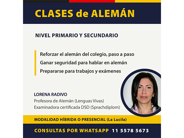 ¡Hola! Soy Lorena, profesora de alemán, hablante nativa y experiencia docente en la Goethe Schule Buenos Aires. Si tu hijo o hija necesita reforzar el alemán del colegio, ganar confianza para habla...