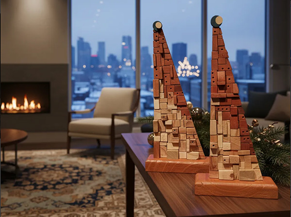 Collage, con maderas duras y semiduras de diferentes colores y texturas.