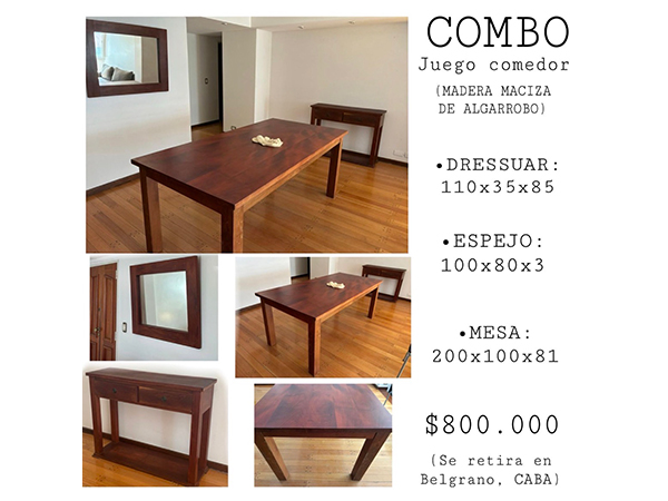 Juego de living: Mesa+espejo+recibidor Impecable estado. Madera maciza. Todo $800.000 Tengo más fotos